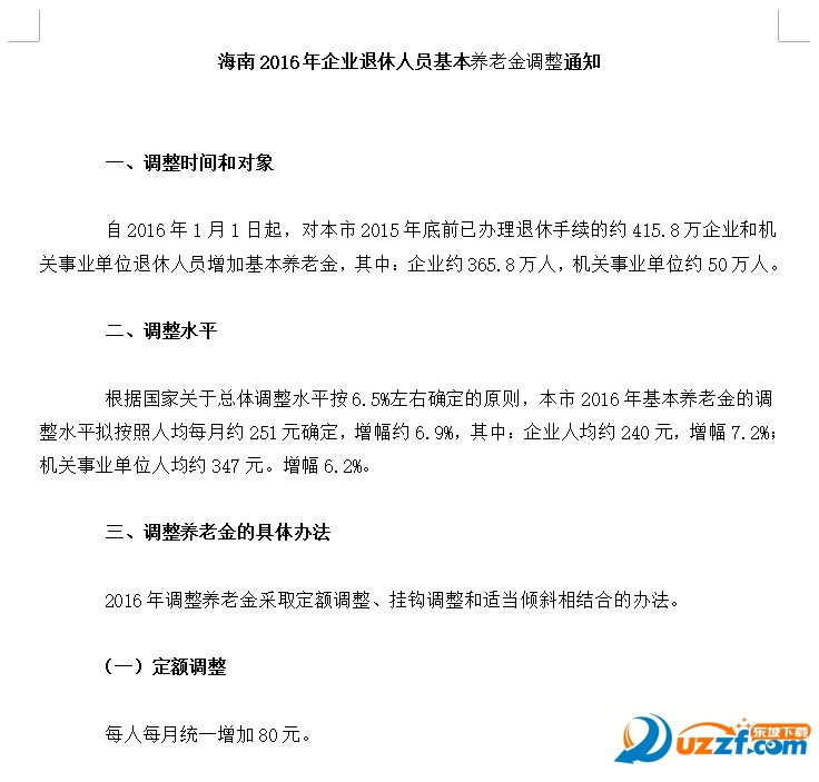 2016年海南退休人员增加养老金通知预览