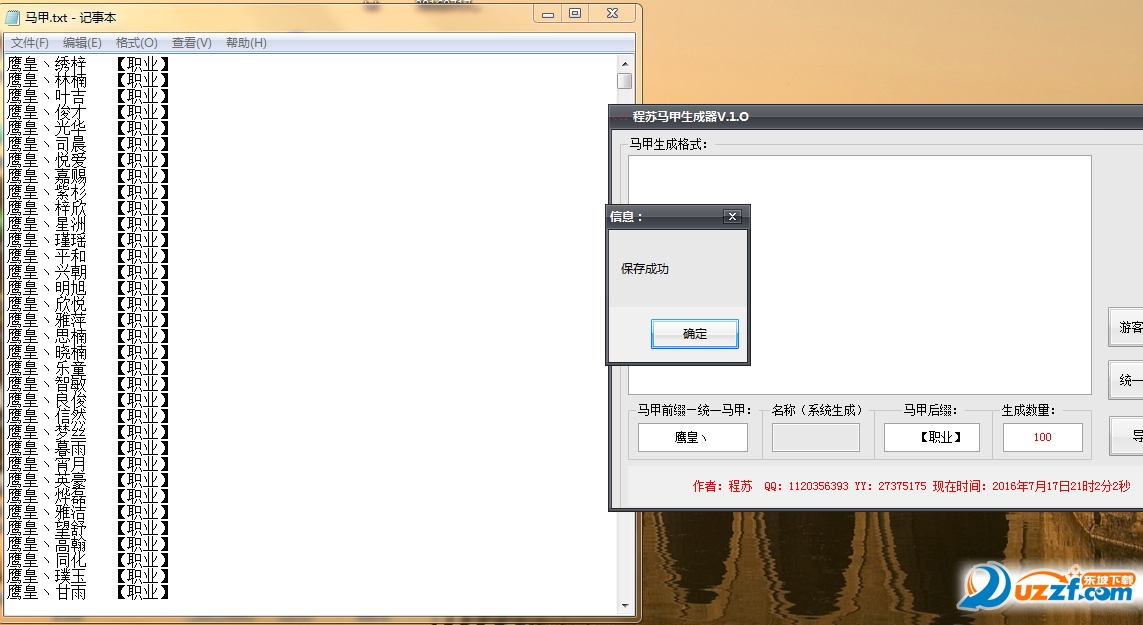 下载解压后打卡程苏马甲生成器,点击游客马甲生产或者统一马甲生成