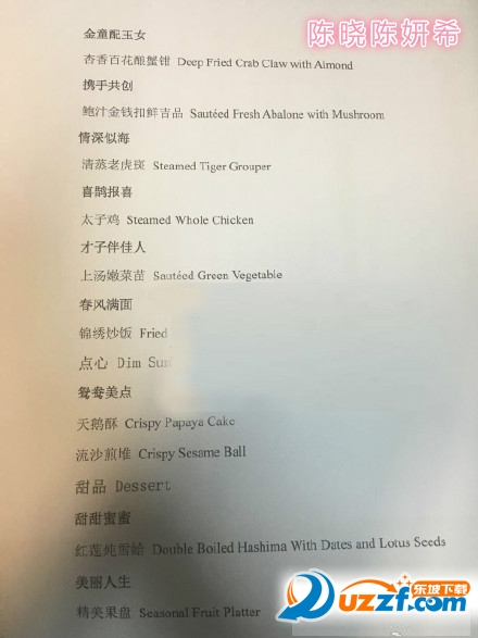 在陈晓陈妍希的大婚中,可是很多媒体关注的焦点,于是就有很多关于婚礼的话题接踵而至,于是今天也将其婚宴的菜单曝光了,想了解他们都有哪些菜单吗,那就一起来看看吧!