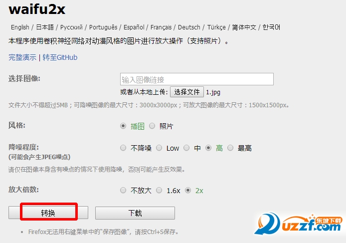 选择风格,降噪程度(可能会产生JPEG噪点),放大倍数
