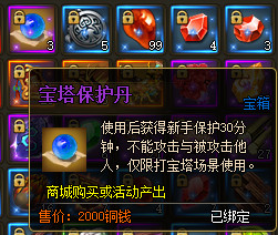 哥们网《天问》游戏中,打宝塔是非常重要的副本,这里是装备提升所有材料的产出地,1-5层打宝塔是完全和平的场景,6层以上为家族模式,你可能受到其他家族玩家的攻击。如果使用新手保护丹,可以保护自己在打宝塔场免受其他玩家的攻击。