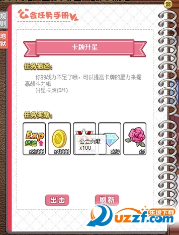 点击出击,即可跳转任务地点,点击刷新可以获得新的任务,每天有10次刷新机会,10次用完之后,你还可以通过花费钻石来刷新哦~
