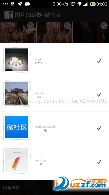 关于手机图片加载器,在当今像素随随便便破千万的时代,一张图片占据的内存都相当可观,作为高大尚程序猿的我们,有必要掌握图片的压缩,缓存等处理,以到达纵使你有万张照片,纵使你的像素再高,我们也能正确的显示所有的图片。当然了,单纯显示图片没撒意思,我们决定高仿一下微信的图片选择器,在此,感谢微信!本篇博客将基于以下两篇博客: