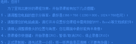 开始录课前有如下几点提醒