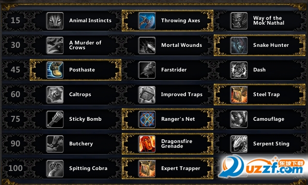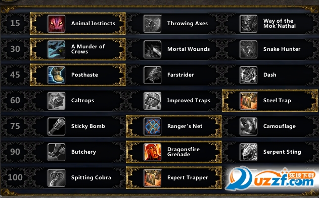 钩子(近身前)>乌鸦(如果选择)>龙焰手雷>爆炸陷阱>精钢陷阱>裂伤>猫鼬(可连打N刀)>侧翼打击>猛禽一击>猫鼬>投斧