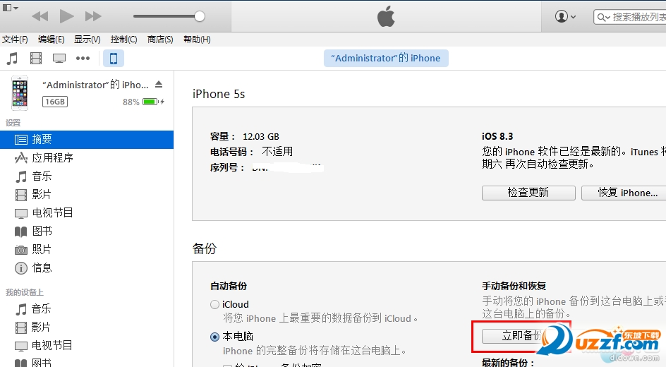 5. 删除备份之后。回到手机摘要。点击立即备份。这个时候的备份要注意的是:你必须安装完成你想恢复存档的游戏!