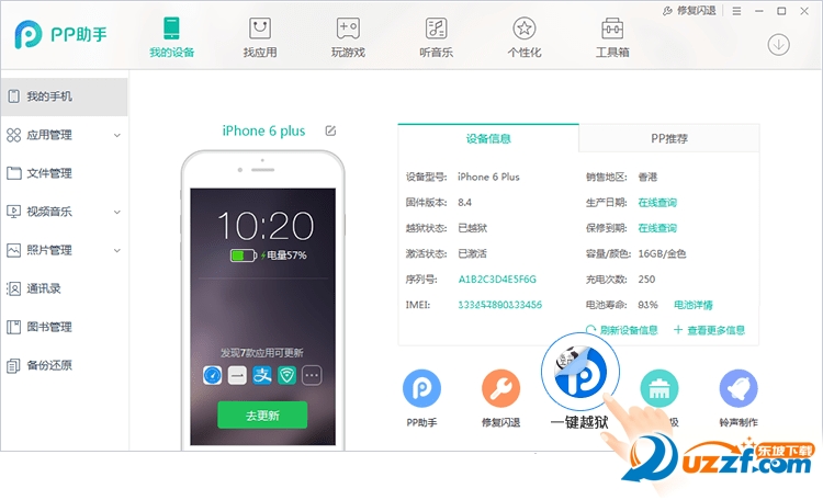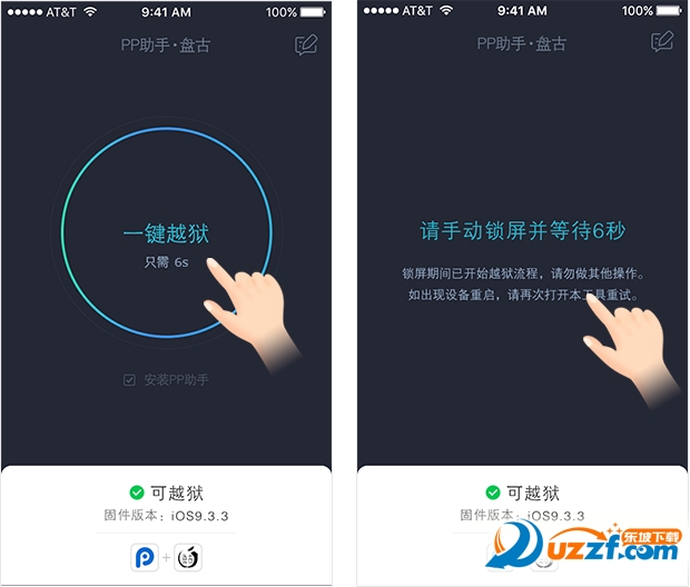 1、手机设备连接PP助手(PC版5.0),请保持手机网络通畅,按照引导安装【越狱工具APP】
