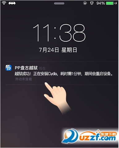 温馨提示:如手机设备重启后,越狱环境丢失(Cydia会丢失或闪退),再次使用越狱工具操作一次即可恢复越狱环境