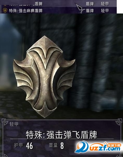 一共有两种,一种盾牌击中敌人之后敌人必定击飞,另一中击中之后必定麻痹,造型用的是晨卫DLC里的奥里埃尔之盾。轻型盾,可强化,不可附魔。