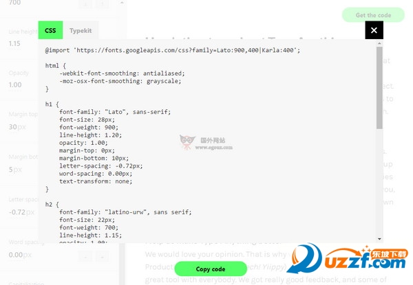Type Anything能切换调整不同的字型组合,输入字型名称就能即时搜寻Google Fonts里收录的免费字型,不过这里目前还无法使用中文字型,因此你可以先选择任一字型,最后输出CSS后再进行细部修改。