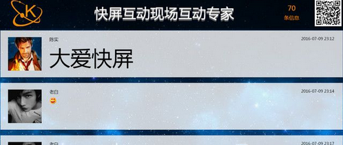 快屏互动是一款非常好用的免费,简单,好用,个性化的场景互动制作工具,他可以让你在快屏互动上面于相关的人一起举行聚会活动,非常的实用,需要的可以看看哦!