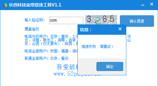 如果显示提速失败就请看下面的省份是不是支持!