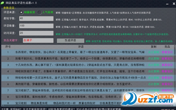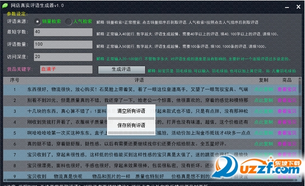 开网店的原因,经常放单,完事还得找一对评语,找完了还得看看评语好不好。所以自己抽空做了一个评语生成器。好吧 其实说评语生成器并不合适,就是抓取别人店铺的评语而已。相对于网上找的评语采集器简单实用,没有多余的功能,自己用的