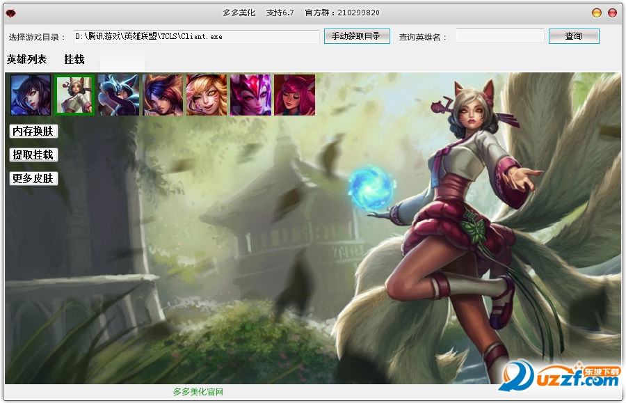 lol英雄联盟多多美化工具,是一款最新的全自己的挂载皮肤修改软件,一键挂载,无需手动!全面支持6.7版本,全新最新自制皮肤,喜欢就试试吧!