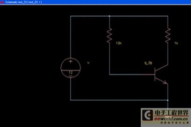 在进入原理图绘制界面之后,可以按照我们自己的需要来绘制电路原理图。首先,我们来绘制一个简单的三极管共发射极电路。