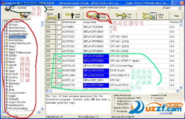 左侧还有所有可授权的分类栏目,选择某个授权,点上面的Install Long Key或者Install Short Key就可以了