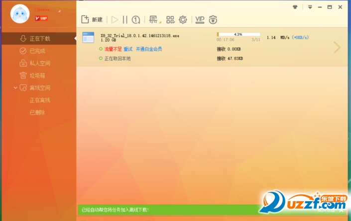 先打开你的迅雷极速版,进行下载,然后看到不足的时候,请直接的打开补丁;