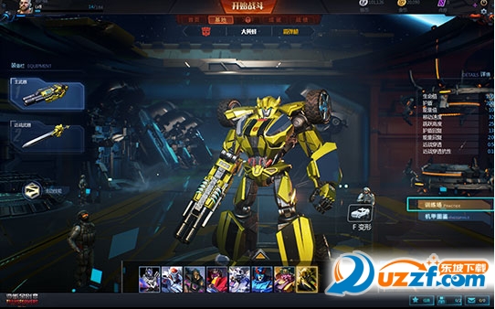 基地是展示玩家拥有所有变形金刚的场所。在基地中玩家可以查看某一个变形金刚的基本信息,包括基本属性、武器、技能。