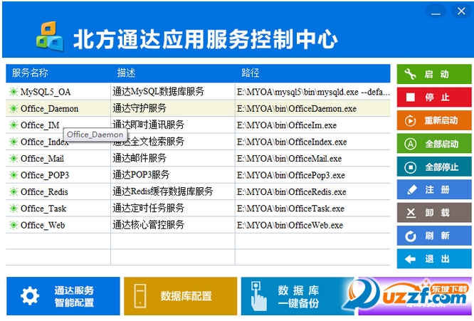 2、安装完,在OA服务管理器(MYOA\BIN\monitor.exe)上关闭所有OA服务,并退出服务控制器monitor.exe。