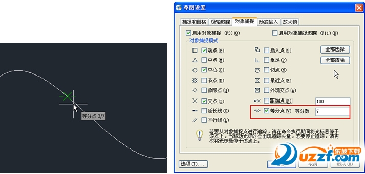 用户可以直接捕捉各类线的等分点,支持直线、圆、圆弧、椭圆、椭圆弧、多线、样条曲线、多段线。