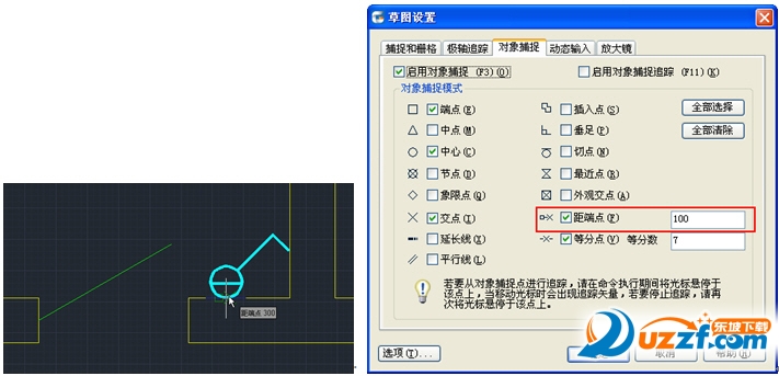 可以捕捉距离端点一定距离的点,距离可以进行设置,支持直线、圆弧、多段线的线段、样条曲线、椭圆弧、多线等各类线。