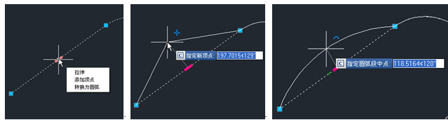可以对多段线进行添加夹点、删除夹点、直线和圆弧的转换,按CTRL键可以切换编辑选项,还可以调整曲线拟合的二维多段线的切线方向。