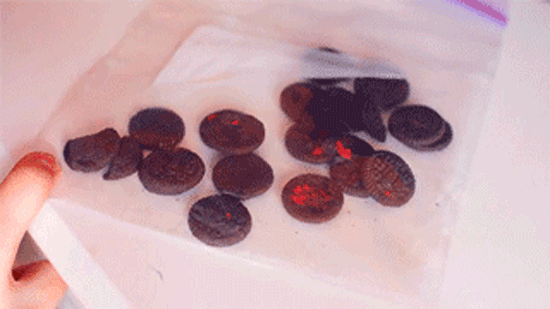 step3:将奥利奥饼干放进塑料袋中啪啪啪拍碎了。