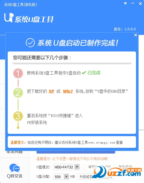 到此,系统U盘工具 U盘启动盘就已经制作完成了,接下来就可以使用刚刚制作的系统U盘工具 U盘装系统了!