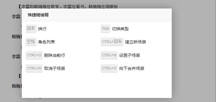 在剧本创作页面右上角有快捷键按钮: