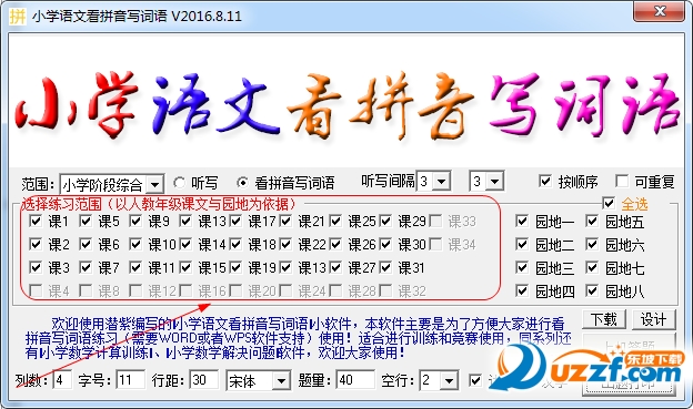 本软件主要是为了方便大家进行看拼音写词语练习(需要WORD或者WPS软件支持)使用!适合进行训练和竞赛使用;