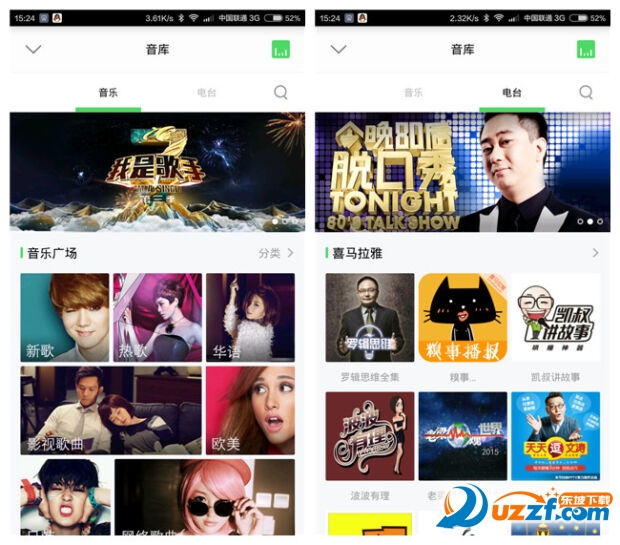 在看看音库里,好多歌曲,尽情的无限听,上面推荐的我是歌手等,下面有几个分类,音乐广场,新歌。热歌,各种风格的歌曲,应有尽有!电台里还支持了喜马拉雅,故事,新闻。笑话。相声,脱口秀,各种有趣的故事会。让你乐个够!是不是很想体验一下!
