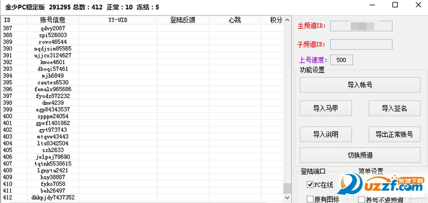 金少YY协议PC稳定版,帮助你完美挂机,把你的号子养成大号,还可以修改马甲,随机性别等功能,非常的不错,欢迎有需要的朋友前来东坡下载使用。
