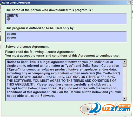 第1步:运行 adjprog.exe 然后点击:Accept(接受)