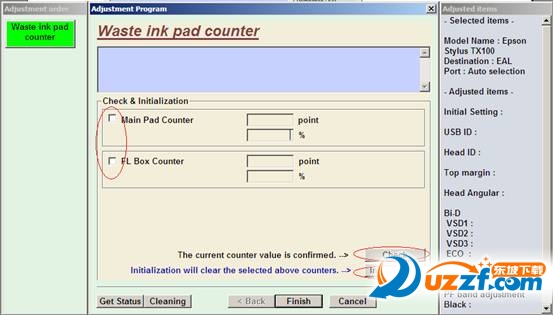 第4步:check 是“核对”的意思,看看到底用了多少量了,你自己看。最关键,:initialization, 可能就是废墨清零的意思吧,千万注意两个复选框中要选上,点勾,必须要的,应该是表示选中他们对他么操作,否则不工作,我是两个都勾上了。呵呵,其实我也不懂,大家一起研究。
