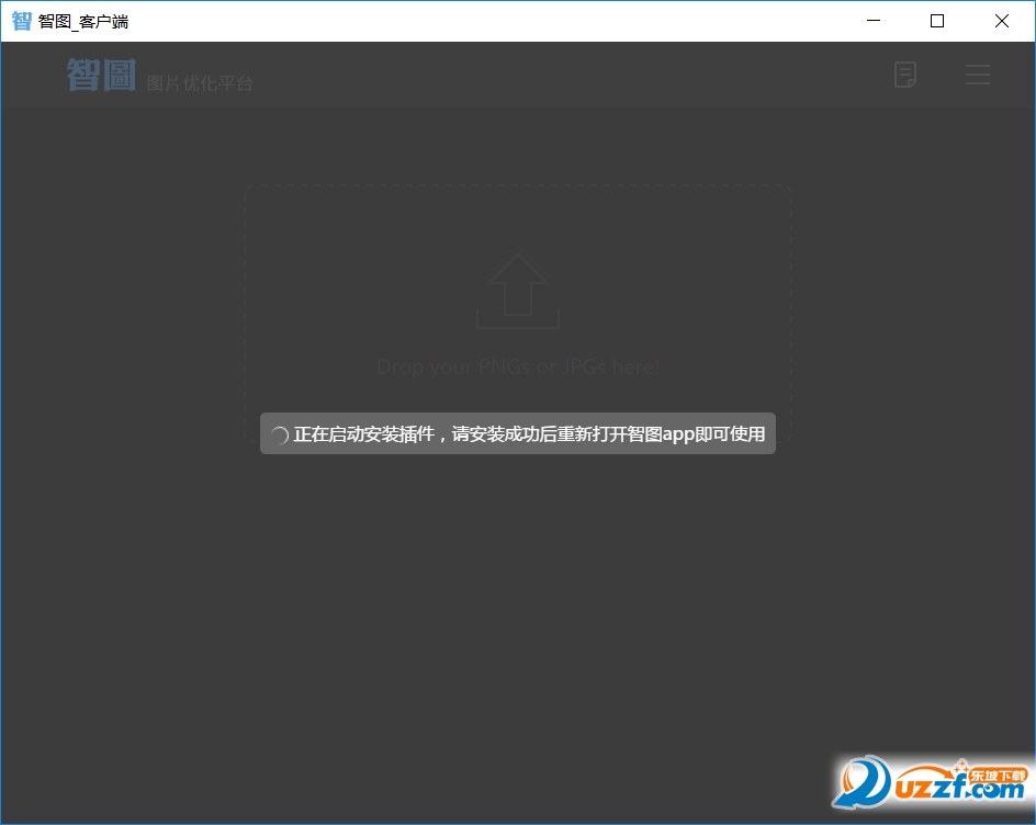一切顺利之后即可开始使用智图客户端,请拖拽图片到客户端任意区域或者点击中间区域上传图片,支持文件夹上传,可设置是否生成WebP(默认不生成)或者是否替换原图(默认不替换)。