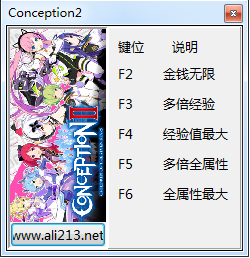 日式rpg游戏——为我而生2(Conception2)已登录了steam,东坡小编这里为喜欢这款游戏的玩家带来五项修改器,可以修改金币无限、多倍经验、将经验值调到最大,多倍全属性等等功能,很强大哟,需要的自己免费下载!