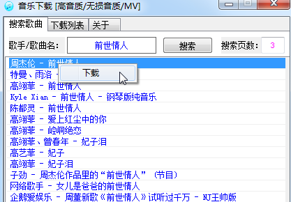 使用本工具可免费下载高音质/无损音质/及匹配的MV视频!