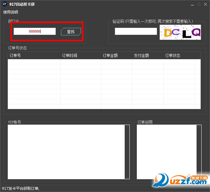 917自动发卡获取是一款订单信息获取工具,可以获取到各种帐号,暴力解析917自动发卡平台卡密。