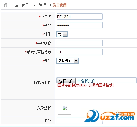 填写客服的基本信息,其中带“*”为必填项