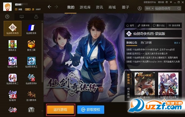 2、下载、安装完成后,在“我的”页面中找到《仙剑奇侠传四》,点击“运行游戏”按钮