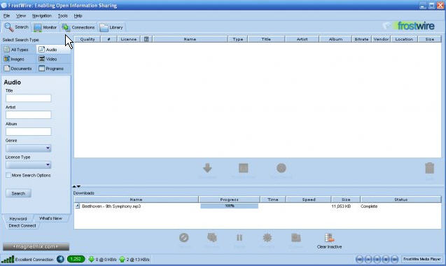 FrostWire(简称FW)是一个基于Limewire开发的P2P文件共享软件,比Limewire更好用,具备友好的用户界面。使用FW不需要支持费用。