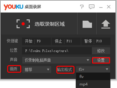 录制完毕,点击保存,还能设置格式,如果要上传优酷,就选择上传优酷