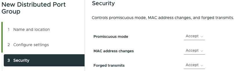 2.如果使用vSS/vDS端口组,请按以下方式在中继端口组上启用安全设置: