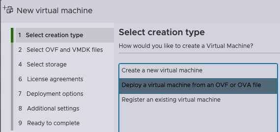 3.在弹出窗口中选择“从 OVF 或 OVA 文件部署虚拟机”