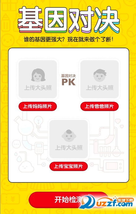 基因对决是一款在线测试基因的软件,用户只需要上传爸爸、妈妈以及宝宝的照片即可快速获得基因的详情结果哟,而且还知道哪个更胜一筹哟,有兴趣的朋友不要错过了。