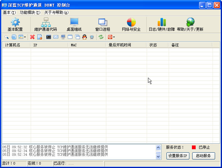 深蓝TCP维护通道--(英文名:DBNT);是一款在已经做好系统后,即时对网吧客户机(或企业局域网客户机)系统 统一进行改变、更新、升级、维护、控制的系统维护工具。使网吧维护(企业维护)更智能、专业。 程序简约、温柔、善良,功能强大,值得您使用。