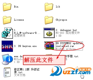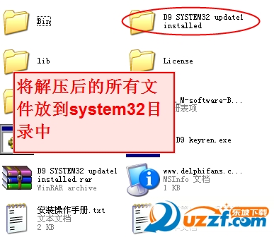 第二步: 将c:\delphi9下的"D9 SYSTEM32 update1 installed.rar"全部文件解压到你的windows的system32目录下。