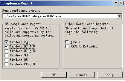 BoundsChecker还提供了一个功能--检测程序中使用的Win32 API函数在不同平台上的兼容性。该功能与前面提到的ActiveChecker、FinalCheck模式没有什么关系,它是独立的一个功能。