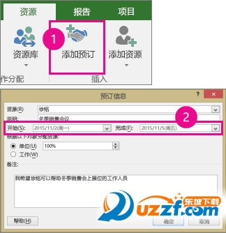 预订完成之后,项目经理便可以将该资源分配给项目中的任务。
