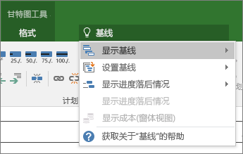 你会注意到 Project 2016 中的功能区上的一个文本框,其中显示“告诉我您想要做什么”。 这是一个文本字段,你可以在其中输入与接下来要执行的操作相关的字词和短语,快速访问要使用的功能或要执行的操作。 你还可以选择获取与要查找的内容相关的帮助。